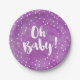 Oh Baby Purple Watercolor Baby Shower Paper Plate