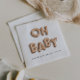 Trendy and fun baby shower napkins feature "OH BABY" spelled out in rose gold balloon letters, with the mother to be's name and shower date beneath in modern black lettering.