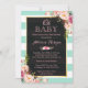 Oh Baby Shower Pink Floral Mint Green Stripes Invitation