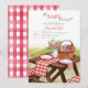 Having a summer baby shower? This enchanting baby girl shower invite featuring a watercolor illustration of a picnic in the parc, as well as a gingham pattern on the back, is the perfect way to celebrate the arrival of your precious little one.