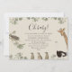 The invitation is adorned with a captivating frame of forest plants and safari animals, all illustrated in a classic vintage style. The soft beige background adds a touch of elegance and warmth, making the vintage illustrations pop and giving the invitation a timeless appeal. At the heart of the invitation is a fully customisable text area where you can add all your baby shower details in a vintage-style- font.