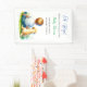 Baby shower personalised banner with a sweet little baby boy sitting next to a Yellow Lab Puppy Dog watercolor style ai art.
