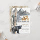 Celebrate the adventure of welcoming a new little one with this painterly baby shower design. Featuring a black bear, birch trees, and misty mountain watercolor art layered over a vintage map texture, this modern woodland theme is perfect for parents who love the outdoors. Personalise with your shower details for a unique, nature-inspired event.