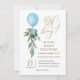 Eucalyptus Greenery Blue Balloon Boy Baby Shower Invitation.