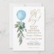 Eucalyptus Greenery Blue Balloon Boy Baby Shower Invitation.