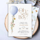 Oh Boy Blue Balloon Wildflower Baby Shower Invitation