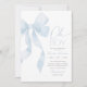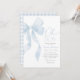 Invite friends and family to share in the joy of your little one's arrival with this blue bow themed baby shower invitation.