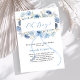 An elegant white background, decorated with watercolored blue flowers and a blue bow. Personalise and add a name and party details.