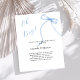 An elegant white background, decorated with blue bow. Personalise and add a name and party details.