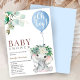 Oh Boy Blue Elephant Baby Shower Invitation