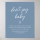 Make your event special with this Modern Blue Baby Shower with our cute and lovely printable Don't Say Baby Sign featuring adorable Boho Minimalist Baby Shower theme. Download, personalise, and create lasting memories with this perfect touch for your joyous celebration!