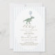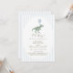Celebrate your little boy’s arrival with this adorable dinosaur baby shower invitation featuring a watercolor green T-rex wearing a party hat and holding a blue balloon. The soft blue and black striped background adds a modern and playful touch. Perfect for dino-themed baby showers or “a little boy is hatching soon” celebrations. Customize all wording to fit your event details and create a memorable keepsake for guests.