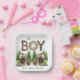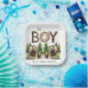 Oh Boy: Forest Wood Typography Bears Baby Shower Paper Plate