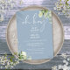 An elegant, stylish baby shower invitation featuring elegant typography and pretty botanical greenery foliage on a dusty blue background. Designed by Thisisnotme©