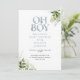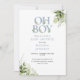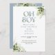 Oh Boy Greenery Dusty Blue QR Code Baby Shower Invitation
