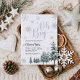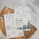 Oh Boy invitation. Winter baby shower invitation for baby boy with silver glitter effect, and watercolor pine trees.