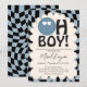 Oh Boy! Modern Groovy Blue Happy Face Baby Shower Invitation