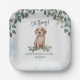 With the wording Oh Boy!, this cute watercolor paper plate features a cute little Golden Retriever puppy sitting on a bed of wildflowers, greenery and foliage. Customise with your name and date. Make your Baby Shower party supplies create the perfect day for welcoming your new arrival into the world.