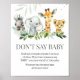 Make your event special with this Jungle Baby Shower with our cute and lovely printable Don't Say Baby Sign featuring adorable Safari Animals Baby Shower theme. Download, personalise, and create lasting memories with this perfect touch for your joyous celebration!