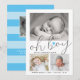 Oh Boy Script Blue Heart Collage Photo Birth Announcement