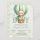 Celebrate your baby's arrival with this adorable bear design. Featuring a beautiful image of an adorable bear flying in a balloon basket and the cheerful phrase "Oh Boy," this green design is perfect for creating a cheerful and unique atmosphere for your event. For complementary products, check out the collection of this adorable baby boy shower design.