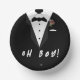 Design features the look of a tuxedo as background to the words, "Oh Boy!" Text is customisable and may be replaced with a name or other wording. Designed to coordinate with the "Oh Boy, It's a Boy!" Baby Shower collection.
