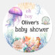 oh boy under the sea baby boy shower Stickers. watercolor sea animals like jellyfish. seahorse, starfish, Coral reef, Mermaid