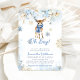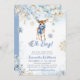 Oh Boy Winter Blue Floral & Deer Baby Shower Invitation
