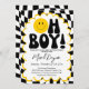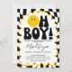 Oh Boy! Yellow Checkered Happy Face Baby Shower Invitation