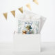 Oh buoy, we're having a boy! Baby shower favour bags. Blue and green fishing themed baby shower. Cute watercolor illustration of a little boy fishing with his teddy bear surrounded by pretty foliage.