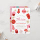 This cute "oh christmas three" girl's 3rd/third birthday invitation features a white background with christmas motifs, such as a tree, present, cupcake, bird, acorn, and ornaments in pink and red shades. The reverse side features a pink background with Christmas tree motifs. Personalize it for your needs. You can find matching products at my store.