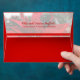Red is a favourite at Christmas time. This envelope is an especially vivid colour. In keeping with the Christmas Carol theme, the inside of this envelope has a muted image of the snow-covered poinsettias that are also on the “Oh Come Let Us Adore Him” card. The holiday text style is a mixture of celebration and formal. Whether it’s a Christmas card, or an invitation for your big annual Christmas event, brilliant stationery is the place to start!