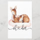 A soon-to-be mum will love this watercolor doe with her fawn resting on a pink cloud. This design features "oh deer" in a handwritten font joined together with a pink heart.
