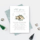 Celebrate the mum-to-be with this charming "Oh Deer" winter baby shower invitation. A watercolor sleeping fawn nestled in greenery and snow is framed by delicate snowflakes in soft blue-green, sage, and slate tones. The playful "Oh Deer, Baby Is Almost Here" header adds a whimsical touch to the elegant winter design. The back features a coordinating snowflake pattern. All text is fully customisable.