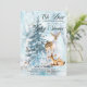 "Oh Deer, A Sweet Baby Is Near!" woodland forest animals -- doe and baby deer, rabbit and birds with an evergreen tree among the snowfall -- Baby Shower design.