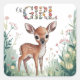 Oh Girl: Little Deer Fawn Girl Baby Shower Square Sticker