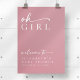Oh Girl Pink Minimalist Baby Shower Welcome Sign