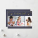 A beautiful three-photo Christmas holiday card from your family in a navy blue and gold "Oh Holy Night" design. Customise with three of your favourite photos from the year, your greeting and family name. This Christmas card reverses to a coordinating blue starry sky design on the back.