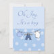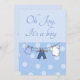 Use these cute and adorable custom designed baby shower invites to help welcome a special newborn baby boy into the world. Invitations feature a two toned blue background with a cute clothesline of baby boy clothing and polka dots. The top of the invitations reads "Oh Joy, It's a boy. Customise all your details of the event on the backside of the invitations using the custom wording template.