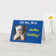Celebrate your brother's birthday with a funny message “Oh no! Another birthday?” The cute grumpy girl sends a whimsical image of a sister in a bold yellow and blue modern design. Open the card to find a happy birthday “Cheer up!” verse of glad wishes.