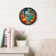 Wall Clock, 25.4 cm Round Black Wooden Frame