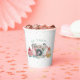 These cute birthday party cups feature a pastel camera with birthday cupcakes on either side and the words "oh snap" on the top. The background is a petite pink polkadot pattern.