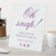 This modern design features the text "Oh snap! Share your photos with us #YourEventHashtag" in modern purple calligraphy script with a Facebook, Twitter and Instagram icon below. Personalise by editing the text in the text boxes provided. #weddingsigns #wedding #weddingdecor #weddingsignage #weddinginspo #weddinginspiration #weddingideas #weddingsign #weddingplanning #weddingdecorations #weddingdetails #weddingseason #weddings #customsigns #eventsignage #eventplanner #weddingplanning #weddingstationery #batmitzvah #quinceanera #corporateevents