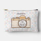 A cute hand drawn camera in pastel colours on a patterned background of coordinating pale squares. The saucy words "oh snap" bulge in the space for the lens. Perfect for a teen or photography buff. Comes with camera in pink, brown, blue, or yellow to match with the background. Matching products available.