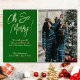 This elegant foil photo card features a happy holiday script message on a festive green background and room for a large family photo on the front and two additional photos on the back. Print and mail or download to email or text.
