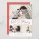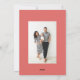 Featuring modern brush script in red with 3 of your photos. Comes with a photo on the back as well.