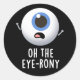 Oh The Eye-rony Funny Eyeball Pun Dark BG Classic Round Sticker