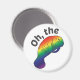 Round Magnet with a colourful manatee implying "Oh the Hue Manatee" It's a funny play on the famous phrase "Oh the Humanity" uttered by Herbert Morrison, an American reporter, covering the Hindenberg disaster. Since, it's become a popular phrase and rainbow coloured sea cows like this one are popping up everywhere.