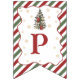 A festive holiday-themed “Happy Birthday” banner featuring red, green, and white candy cane stripes with Christmas greenery and gold snowflake accents. This cheerful winter design is perfect for Christmas or seasonal birthday parties, adding a charming decorative touch to your celebration. Ideal for coordinating with matching first birthday or holiday-themed party décor.