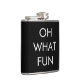 This black and white flask is decorated with the words "Oh What Fun", making it a fun and masculine gift during the holiday season.